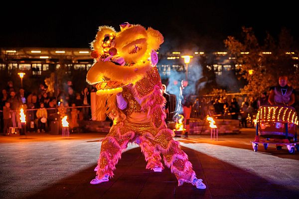 Gemeinsam mit Großmeisterin Wu Min und ihrem Wushu-Team präsentieren wir den eindrucksvollen chinesischen Löwentanz, der für Begeisterung sorgen wird.